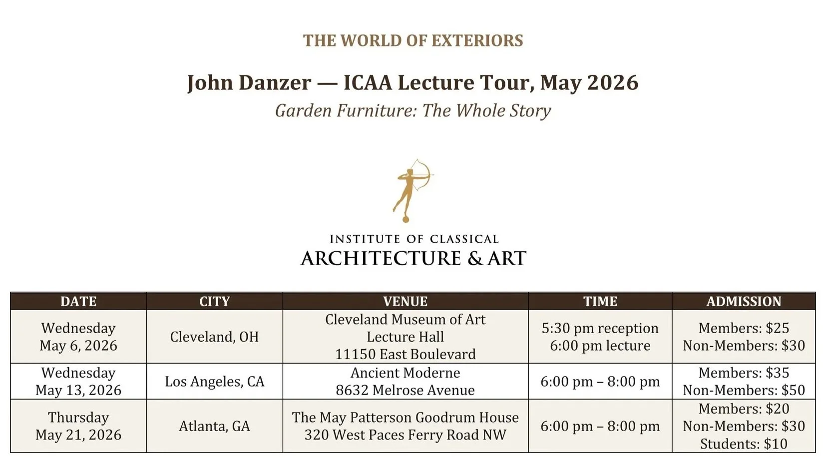 Register via the Institute of Classical Architecture & Art: classicist.org/calendar